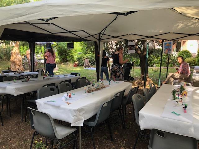 A la fête de l’été, j’ai fait mon spectacle de danse avec Patricia et le groupe. J’ai fait le tango, l’afro et « A l’aide » et c’est tout ! On a eu beau temps pendant tout l’après-midi et à midi j’ai pris l’apéro et après j’ai mangé le plat chaud avec les saucisses. Ensuite, ma sœur est venue me voir avec ma nièce Justine ; on est restés ensemble à table jusqu’à la fin de la fête et c’était bien ! Caroline.